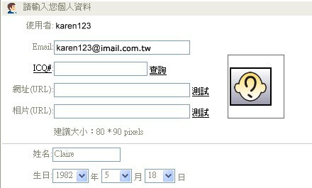 依照自己需求分別修改個人資料,修改完畢後請選擇〔確定〕,即完成修改個人資料的動作。