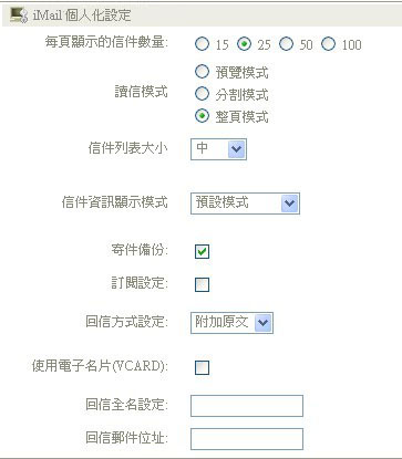 選擇欲調整的iMail個人化設定項目,進行調整,調整完成後,選取〔確定〕按鈕。 |