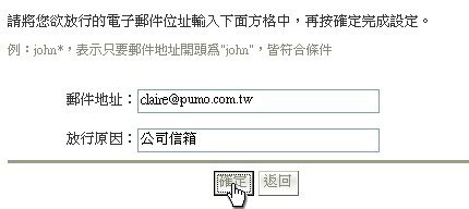 | 3. 填入確認要加入的名單,備註放行的原因,再按確定即可。